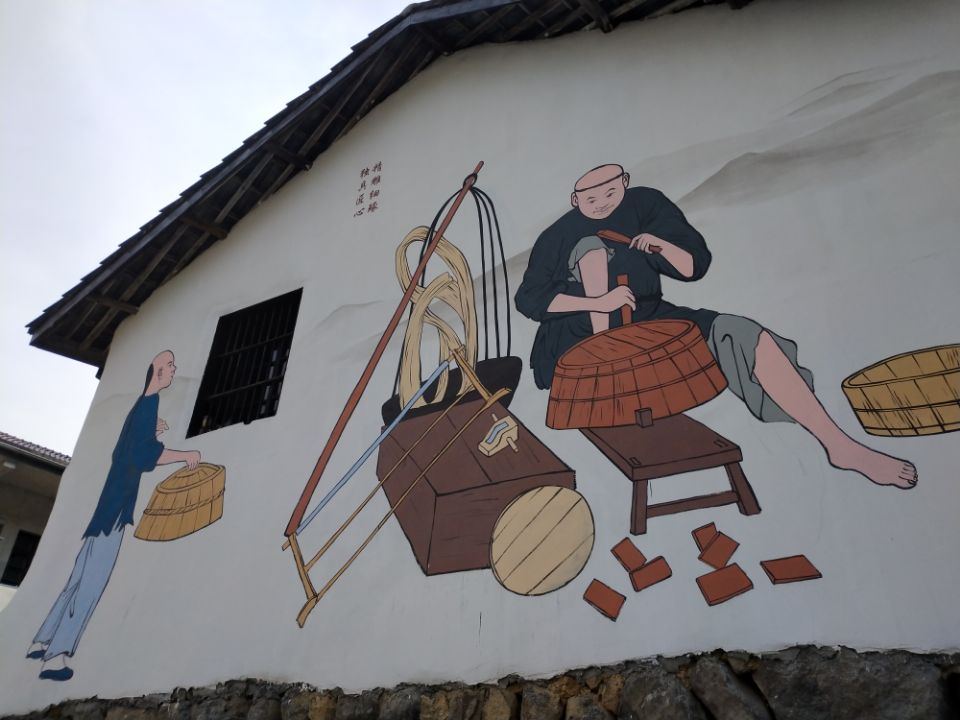 考察组首先参观了施阮村文化礼堂,该礼堂是依托宗祠建设的,经过修缮之后,形成了村民文化娱乐活动场和村里的道德教育场所。在礼堂外的广场上,通过形式多样的墙绘走廊设立了“文化回廊”,内容包含社会主义核心价值观、美好家园、传统文化等内容。施阮村还专门开辟建设了匠人工作室,吸引了一批竹工艺大师进驻,并和台湾南投竹工艺文化创意产业开展了交流合作。