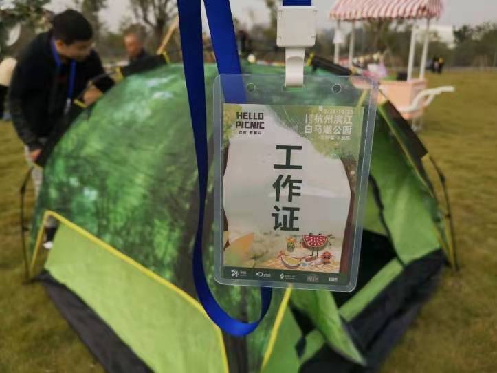 杭师大的小伙伴们六点多便在杭师大仓前地铁站集合,跨越杭城前往坐落于滨江东南部的白马湖。白马湖风景甚好,透过湖有时也便能望到华数集团高耸的大楼。到场后的第一件任务就是与老师对接,我们先帮忙搬运物资、搭建帐篷,并且在最短时间内了解到了,整个场地清晰的功能区域分布,并迅速熟悉。