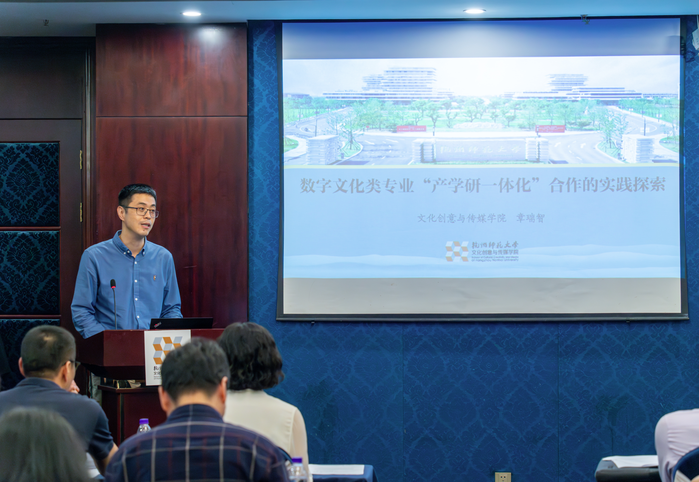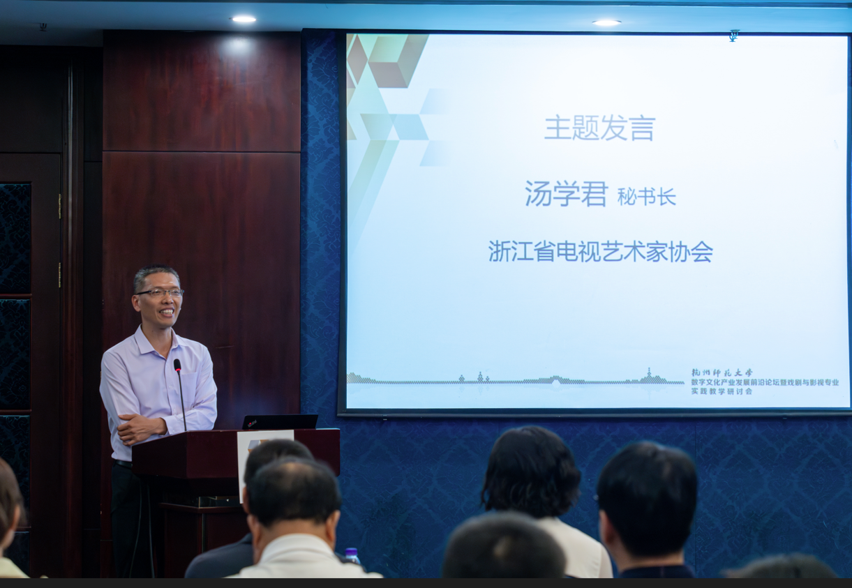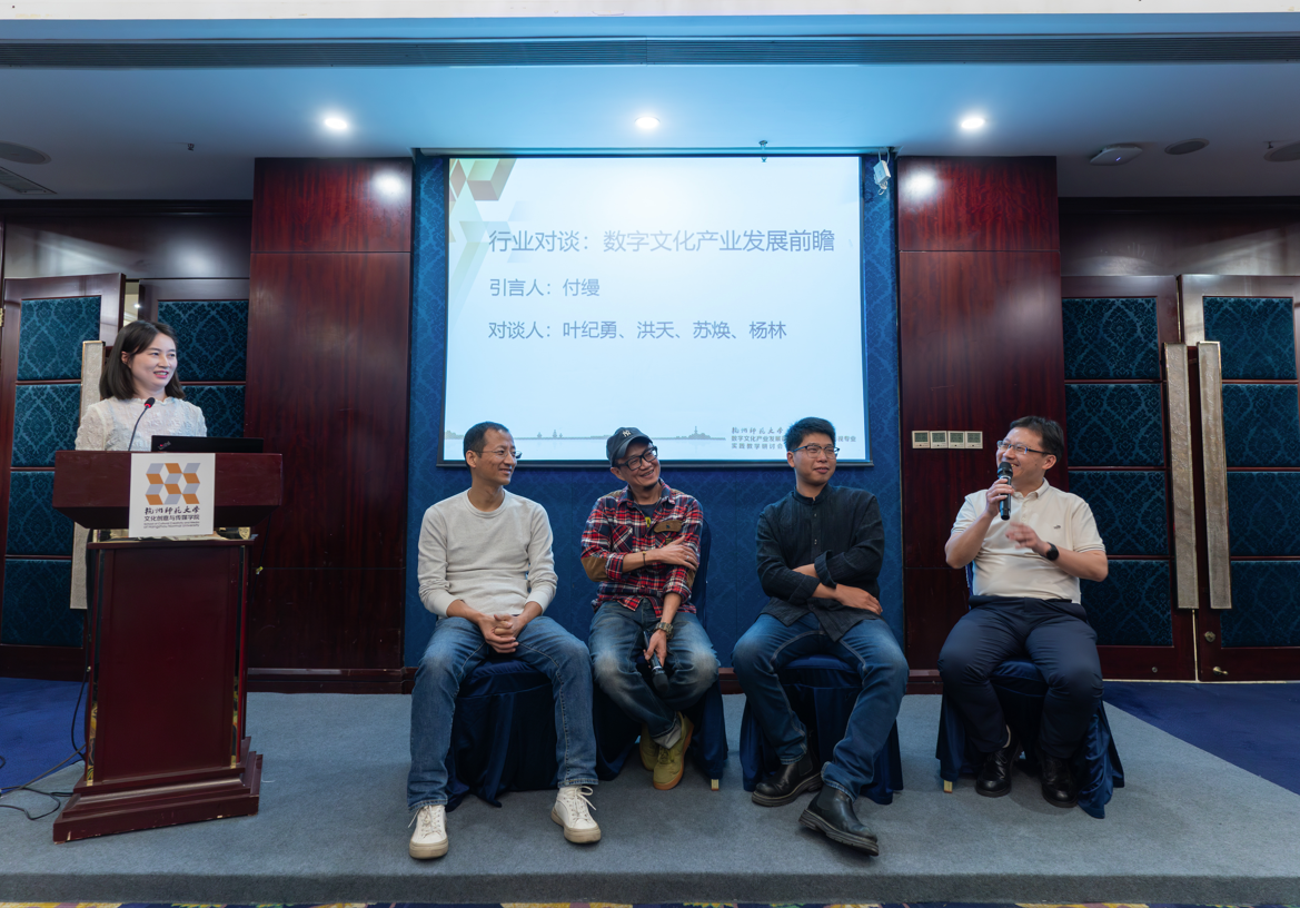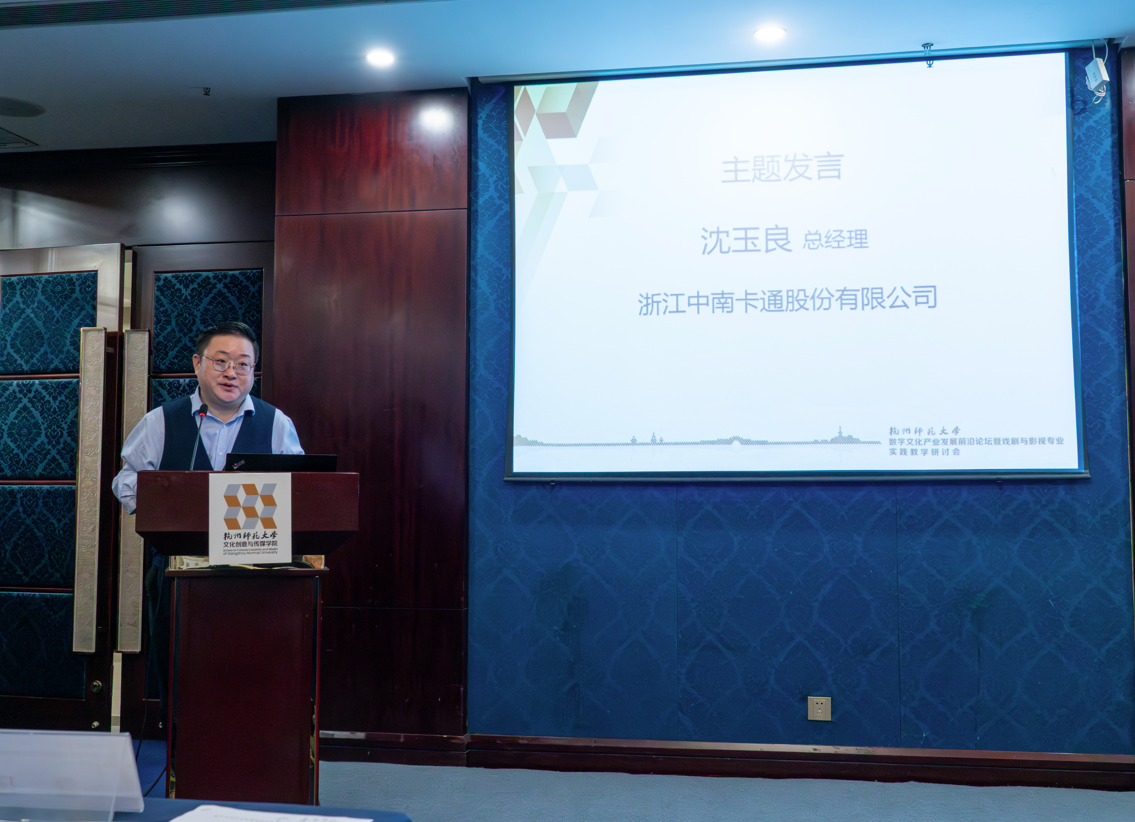 在数字文化产业发展前沿论坛中,浙江省电视艺术家协会秘书长汤学君、杭州人民广播电台新闻综合频率总监金波、浙江中南卡通股份有限公司总经理沈玉良、候马传媒有限公司政府事务部总监柏鑫禾以及杭师大文传学院的夏烈教授带来数字文化产业发展的分享。此外,参会人员以“数字文化产业发展前瞻”和“数字文化产业人才培训的新路径”为话题,展开行业对谈,切实响应国家号召,促进校企业深度融合,让数字文化产业新业态蓬勃发展。至此,本次会议圆满结束。