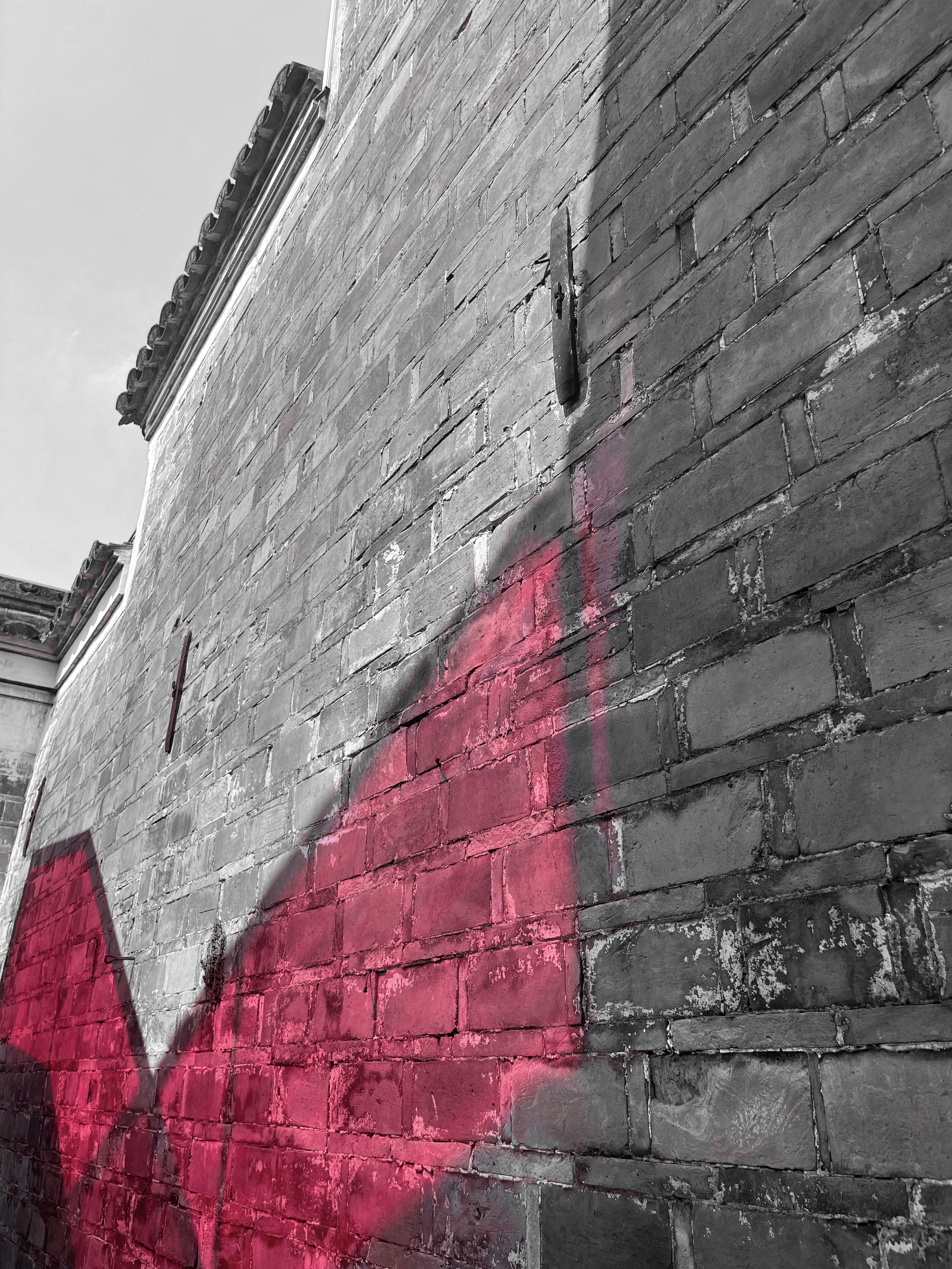 本作品的摄影地点为慈城内的周信芳戏剧艺术馆,信步馆中,一座从屋檐上方“横空出世”的红桥颇为亮眼。据了解,此红桥的设计师为宁波大学潘天寿艺术设计学院教授邵良,其设计理念就是将传统文化与现代艺术交融,从沉浸式、情景式的角度综合考虑全新的建筑功能。这座红桥不管从高度、材质、颜色、线条上都与原建筑风貌形成了一种对比,这即是一种视觉上的对比,亦是一种时代文明的碰撞,走上红桥,对每一个游客来说都是一种享受,看慈城古镇的全景,品古今传承之韵。
