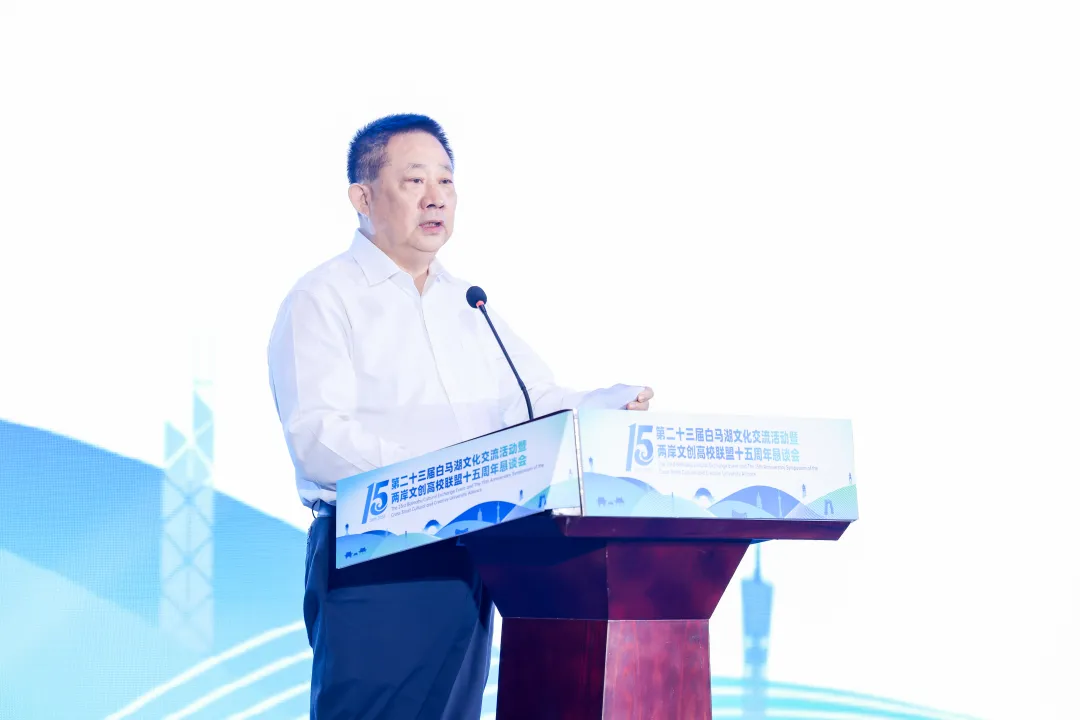 著名文化学者、原台湾艺术大学校长黄光男致辞表示,五千年文明是中华民族璀璨智慧的结晶,而文化创意产业承载着传承与创新的重要使命。两岸高校作为中华文化的传承者与发扬者,拥有深厚的文化底蕴,也必将在文化创意产业的探索与实践中书写中华文化繁荣兴盛的新篇章。