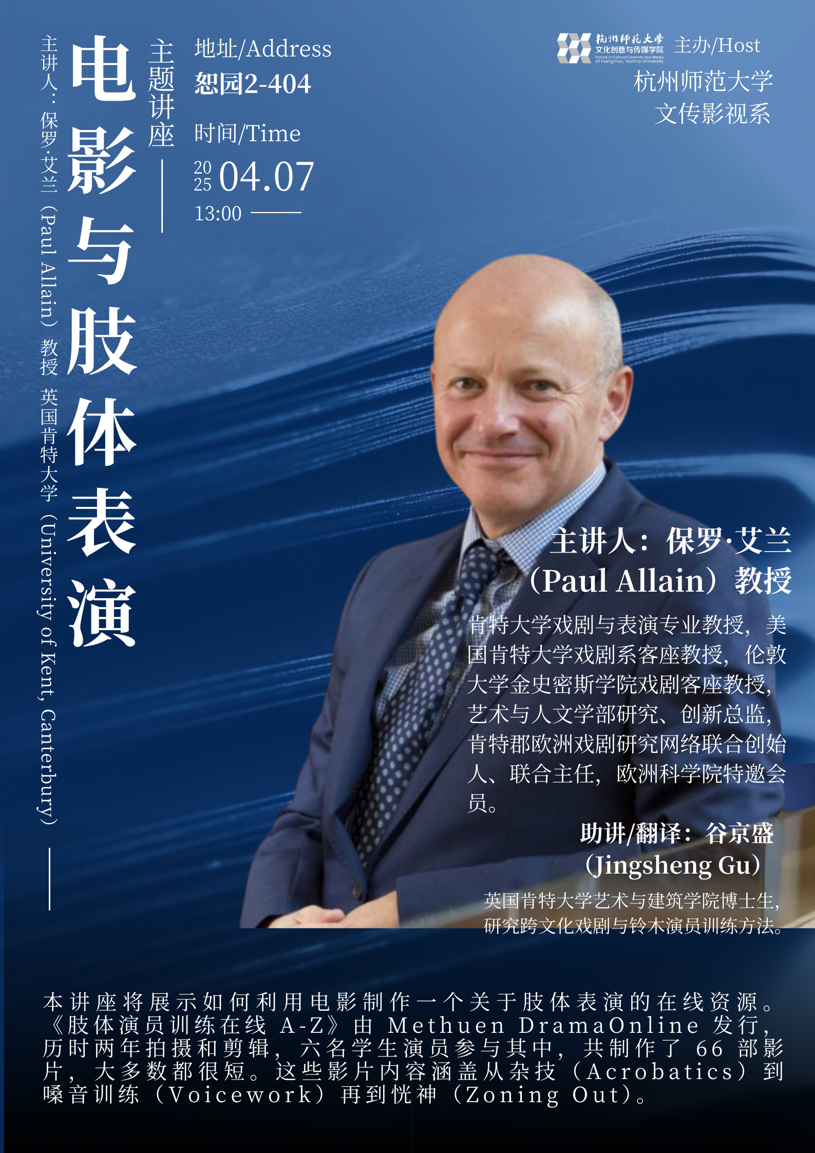 讲座时间:4月7日13:00-17:00