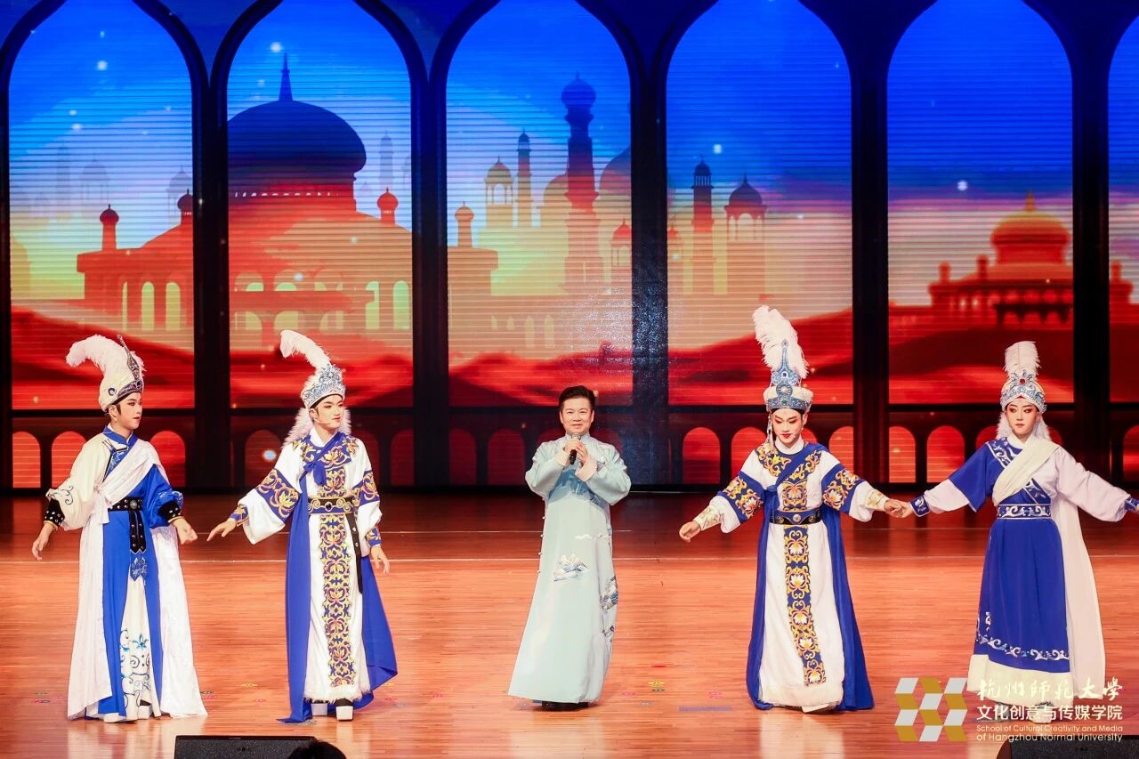 当代越剧表演艺术家、钱塘学者赵志刚教授与学校叶帆戏曲社的学生共同带来戏剧表演《沙漠王子・算命》