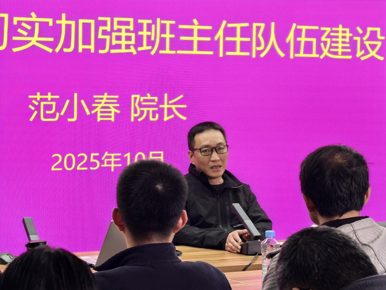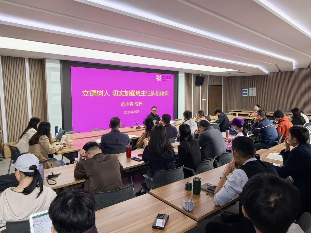 班主任工作考核管理办法》进行系统解读。从日常班级管理、学生思想引导、学业帮扶成效、重点工作开展等维度,进一步细化班主任工作要求,明确量化考核指标;同时详细说明支持政策,通过正向激励机制激发班主任工作积极性,为规范班主任工作流程、提升工作质量提供制度保障。 经验交流分享,传递育人温度 在优秀班主任经验交流环节,2024-2025学年优秀班主任代表余俊雯老师结合自身工作经历,以“新手班主任的成长与实践”为主题分享心得。她强调,班主任工作需“用心用情”,既要关注学生日常学习生活需求,更要找准专业课与思政教育的结合点,通过课程思政案例挖掘、专业实践中的价值引领,实现知识传授与品德培养的有机融合,帮助学生树立正确的职业观与价值观。 聚焦就业指导,破解学生难题 针对2025届毕业生就业工作,就业工作代表张迪峰老师结合当前就业形势与学生实际需求,分享就业指导经验。他提出,就业指导需“从学生实际出发”,通过一对一谈心谈话精准掌握学生就业困惑,围绕简历优化、面试技巧、职业规划等方面提供个性化指导;同时注重“打好感情牌”,建立长期沟通机制,及时跟进学生就业进展,帮助毕业生缓解就业焦虑,顺利实现从校园到职场的过渡。 强化网络思政,守护清朗空间 在网络思政工作交流中,臧金英老师以“守护清朗网络空间”主题班会设计与实践为例,强调网络思政教育的重要性。她指出,面对复杂的网络环境,班主任需引导学生树立正确的网络认知,在内容创作中坚守“真实性”原则,明确“高流量的前提是正能量”,通过案例分析、情景模拟等形式,帮助学生提升网络素养,自觉抵制不良网络信息,成为清朗网络空间的建设者与守护者。 赋能数字管理,规范工作流程 此外,会议还针对学校最新上线的学工系统班主任工作台开展专项培训。辅导员通过屏幕演示、操作讲解等方式,向全体班主任介绍了工作台的核心功能,包括学生信息动态管理、班级事务线上办理等模块,重点演示了日常思政活动记录等高频操作流程。此次培训旨在帮助班主任快速掌握数字化工具,通过技术赋能提升工作效率,进一步推动班主任工作从“传统管理”向“精准服务”转变,为班级管理的规范化、标准化提供技术支撑。 凝聚育人共识,共筑成长之路 会议最后,院长范小春围绕“立德树人”这一根本任务,进一步强调要切实加强班主任队伍建设。他指出,班主任是学生成长路上的“知心引路人”,做好班主任工作是落实立德树人根本任务的关键环节。他要求全体班主任要主动“融入学生、走近学生”,通过定期走访宿舍、参与班级活动、建立线上沟通等方式,拉近与学生的距离;要以学生需求为导向,将思想引导、学业指导、生活关怀与就业帮扶有机结合,切实解决学生成长过程中的实际问题,为培养德智体美劳全面发展的高素质人才贡献力量。 此次全体班主任会议既是对学院前期育人工作的梳理与复盘,更是对新时代高校班级管理与思政教育工作的深化与部署。从考核机制的规范化到经验智慧的共享化,从就业服务的精准化到网络思政的常态化,每一项议题都紧扣“以学生为中心”的教育理念,每一份分享都承载着“为党育人、为国育才”的使命担当。学院将以此次会议为契机,进一步凝聚“全员育人、全程育人、全方位育人”的合力,推动班主任队伍建设提质增效,以更扎实的工作作风、更创新的育人方法,为培养适应时代需求的文化创意与传媒领域高素质人才筑牢根基,为推动高等教育高质量发展注入基层育人力量。